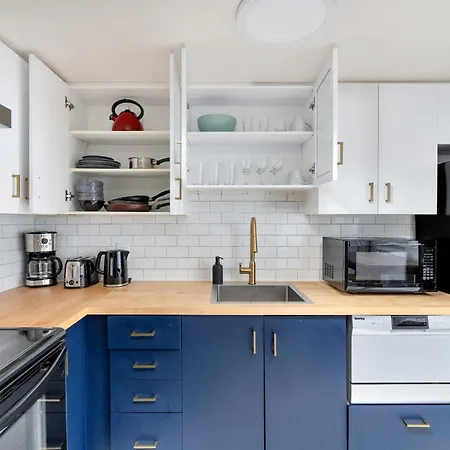 تحتوي الشقة على لوازم إعداد القهوة والشاي والمطبخ المجهز بالكامل المجهز بالمايكرويف والغلاية الكهربائية والبرَّاد. يقع مطار بيلي بيشوب تورنتو سيتي على بعد 5 كم، في حين تقع محطة حافلات Fleet Street على بعد دقائق من هذه الشقة.